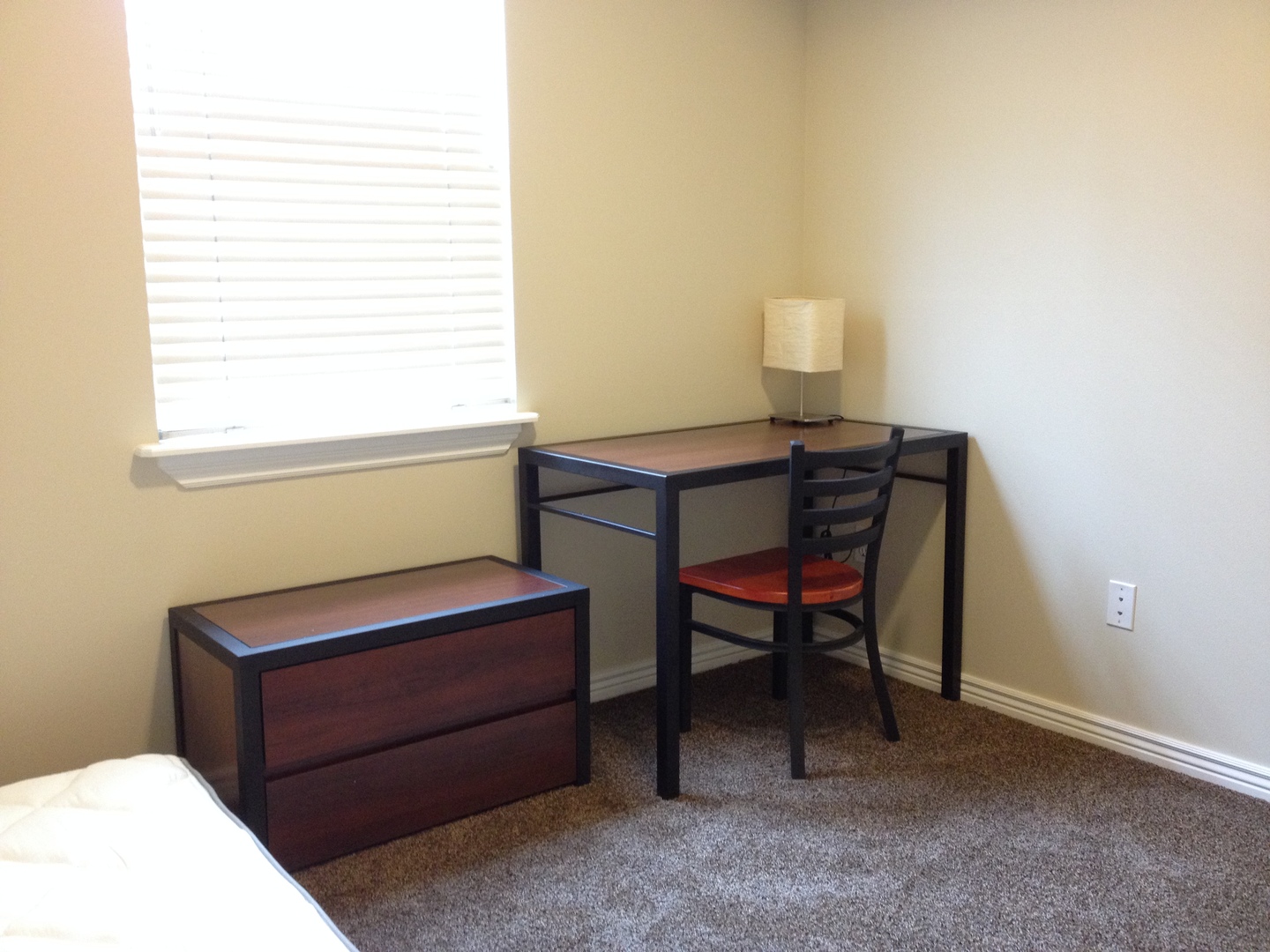 This is the small bedroom with a shared bathroom and uncovered parking.
